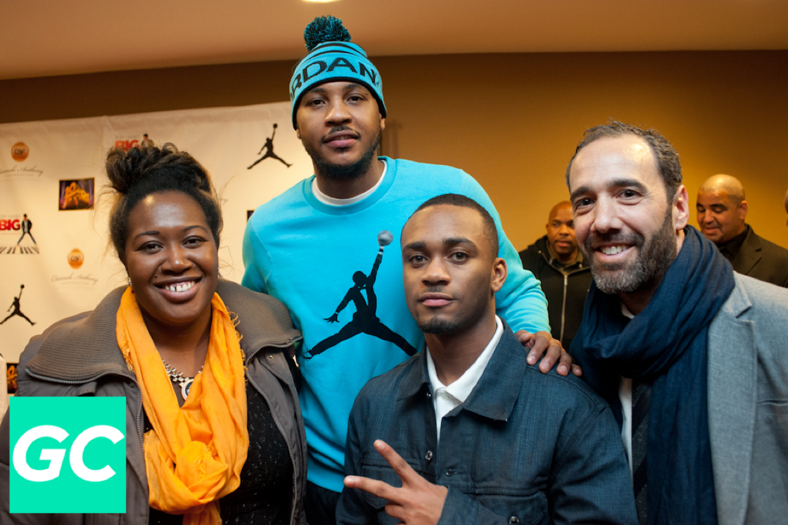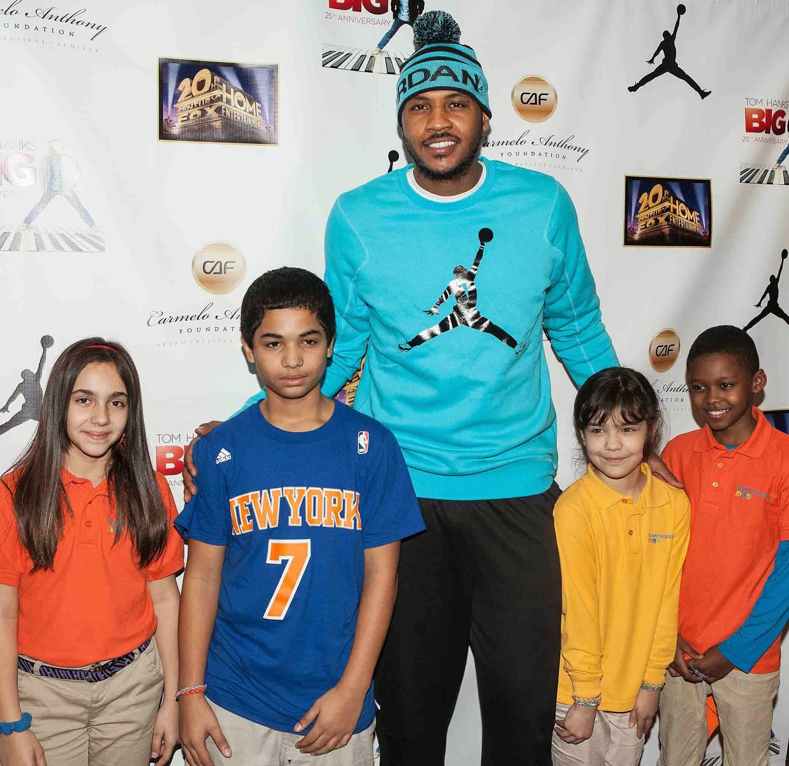 On December 20th The Carmelo Anthony Foundation hosted a special screening of ‘BIG’ in Times Square at the AMC Empire Theater. See Pics below that include Carmelo Anthony plus special guests in front of the Red Carpet Runway Hollywood Professional Package. The Hollywood Professional Package includes a Custom 8′ x 10′ Step Repeat backdrop decorated with the Carmelo Anthony foundation and sponsor logos. The backdrop is held up with a retractable step repeat backdrop stand and accompanied with a fire engine red 3′ x 10′ carpet in front of the backdrop. See event pics below.