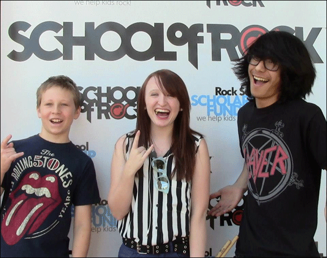 The students at School of Rock put on a rockin’ show for their family, friends and even rock-star Alice Cooper! The concert, Rockin for a Reason, was the school’s first benefit fund so the red carpet was rolled out! The talented kids and their families got a taste of celebrity when they posed on a 7′ x 8′ step and repeat from RCR! Everyone whipped out their best rock-star pose for the red carpet and put on an awesome concert! Scroll down for pics.